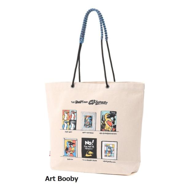 フロントには、歴史上のさまざまなアート手法や主義を、ポップな色使いとブービーバードでユニークに表現した総柄デザインが魅力です。