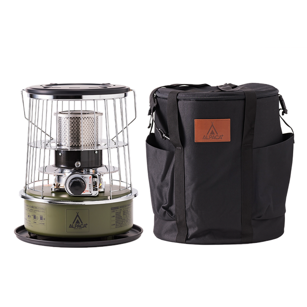 軽量でスペースを取らないコンパクトなサイズ感。置き場所を選ばず、使用しない時でもレトロなインテリアとして活躍します。また、長距離の持ち運びにも便利な専用バッグ(2way)は、アルパカプラスストーブをクッション材でしっかりと保護します。