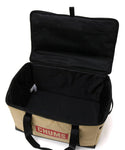 リサイクル100%ポリエステル素材を使用したコンテナボックス(Mサイズ)。キャンプギアをまとめて収納できる大容量で、キャンプサイトに置いて見せる収納にも使いたいデザインが魅力。 荷物を入れたまま車載や自宅保管ができ、用途によってまとめておけばキャンプの準備や後片付けの負担を軽減。使わない場合には畳んでコンパクトに収納できる点も魅力。