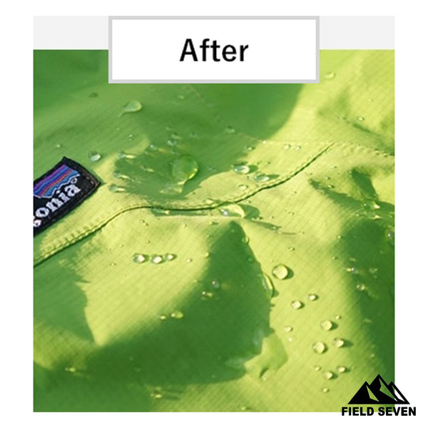 ポリエステル、ナイロン、コットン、ポリコットンなどのあらゆるテントやアウトドアウェア生地に対応する撥水剤です。