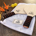持ち運びに便利な収納用メッシュバッグが付いています。カラビナが付いていて保管にも便利です。