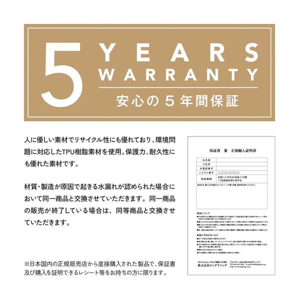 ●材質/製造が原因で起きる水漏れが認められる製品に対して5年間の保証。