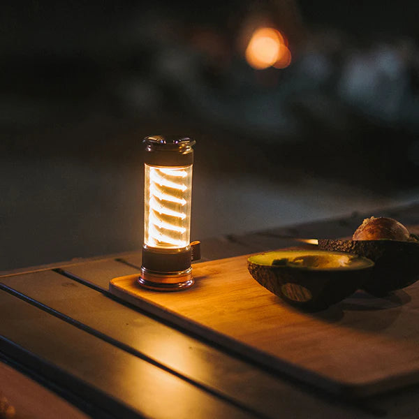 ハンドライト、ランタンとして使用できるユニークなアイテムで、コンパクトなサイズでありながら7つの照明モードを持ち、照明や雰囲気を自在に調整することができます。
