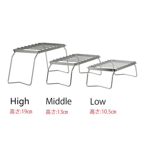 大きい鍋をかけても安心な強度と耐久性がありながら、脚を折りたたんでコンパクトに収納できます。 脚を取り外してかまどの五徳として使ったり、焚き火台の上にのせて大きな鍋で調理ができます。