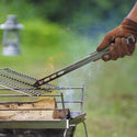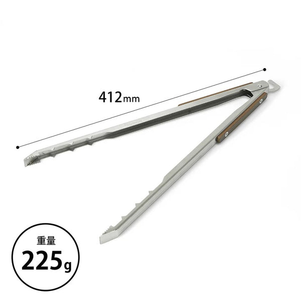 丈夫なステンレス製で大きな薪を挟んでもねじれにくい構造です。