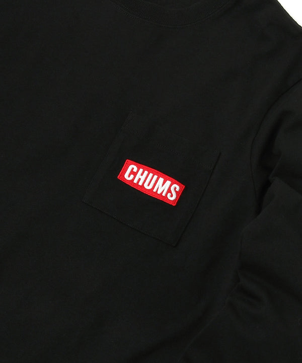 CHUMSロゴの刺繍がワンポイント、ポケット付きロングスリーブTシャツ
