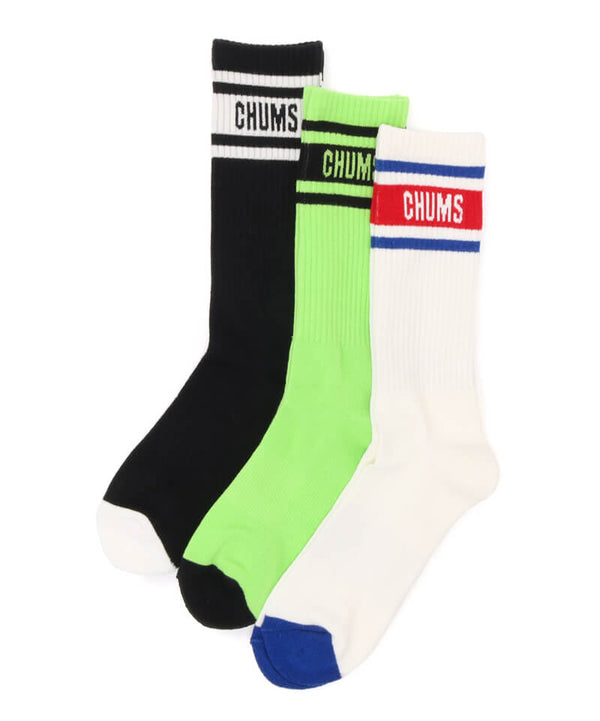 - 抗菌防臭加工を施し、さらっと快適な履き心地のミディアム丈ソックス。ストリートテイストな3ラインの中心にCHUMSロゴを編み込んだデザイン。ハーフパンツやクロップドパンツとの相性が抜群で、スタイリングのアクセントにぴったりのひと品。3足セットなので気分やシーンに合わせてお好きな一足をお選びいただけます!