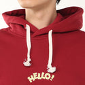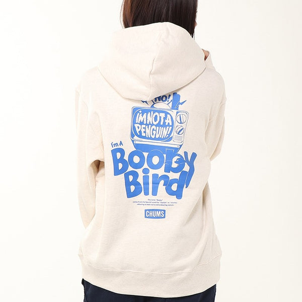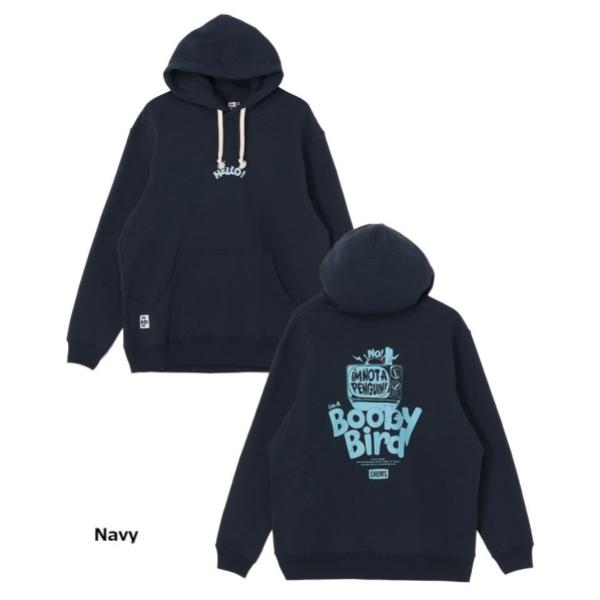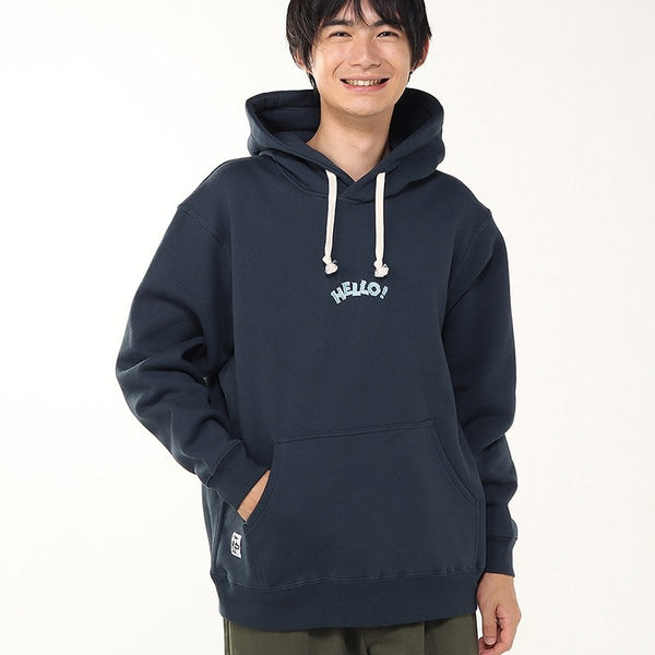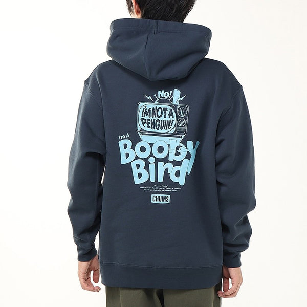 「ペンギンじゃないよ!」というブービーバードの強い思いを表現したプルオーバーパーカー。ゆったり着られるオーバーサイズシルエット。 フロントにはシンプルながらもアクセントとなる「HELLO」の文字を刺繍でプラス。背面には「I'm Not a Penguin! I'm a Boobybird(ペンギンじゃないよ!カツオドリだよ!)」というメッセージをテレビ画面に大きく映し出した、あそびゴコロのあるグラフィックをプリント。レトロなカートゥーンポスターを思わせるデザインで、キャッチーな一枚に仕上げました。