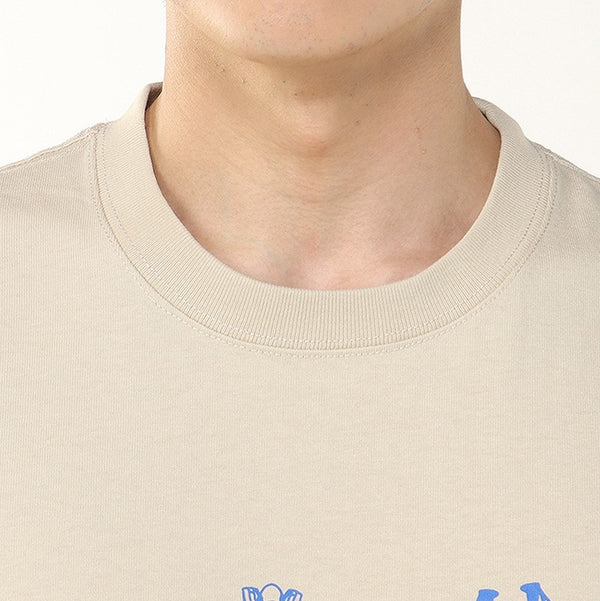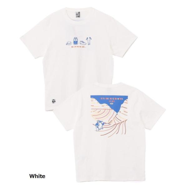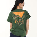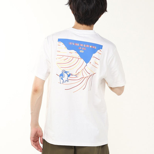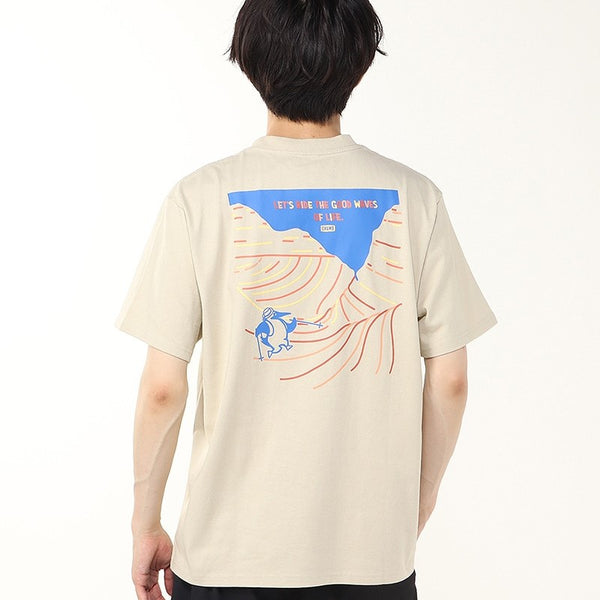 ユタ州の秘境スポット『ザ・ウェーブ』に向かってブービーがハイキングしている様子を描いたグラフィックTシャツ。ザ・ウェーブの特徴的な波のような地層を線でシンプルに表現し、ボディ色によって昼と夕方に変えたのもポイント。