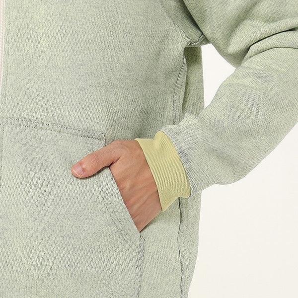 USAコットン100%仕立ての裏起毛スウェットシリーズ。インレイ編みという中糸のない編み技法を使用し、へたりにくく、しっかりした生地感が特徴的。今季では糸の番手や加工などを調整し、より柔らかく伸び感のある生地にリニューアルしました。