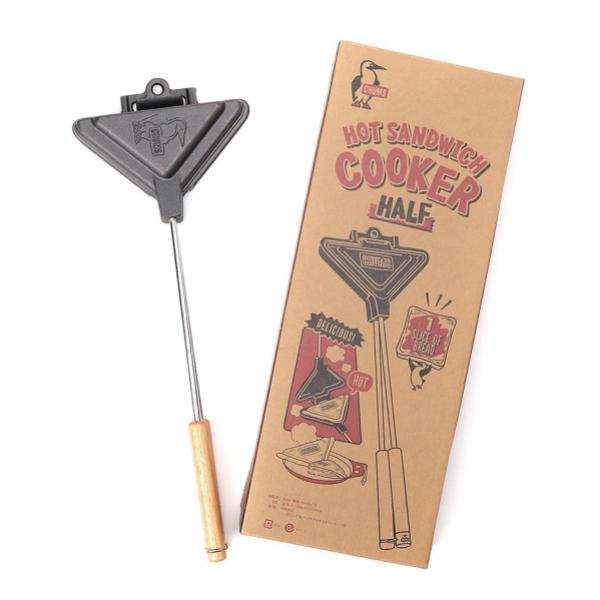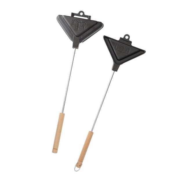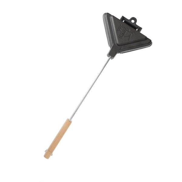 1人分を作るのにちょうど良い、食パン1枚で作れるホットサンドクッカー。プレートは鋳鉄製で重厚感があり、焚き火や炭火での調理も可能。少しづつ油を馴染ませて育てていく楽しみも魅力の一つです。