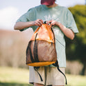 デザインアクセントとなっているメッシュのアウトポケットは、すぐ取り出したいものの収納やタオルや着替え等 濡れたものの収納にもおすすめです。