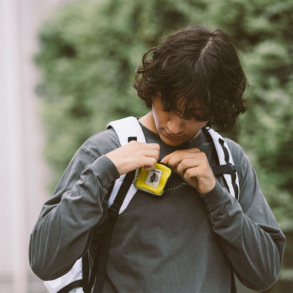 キーホルダー感覚でバッグに取り付けて、ちょっとした収納力をプラス。