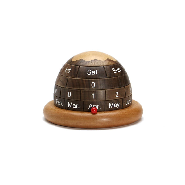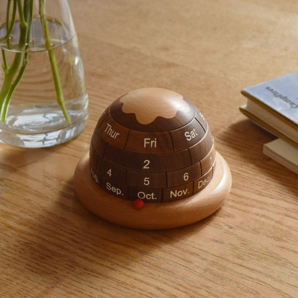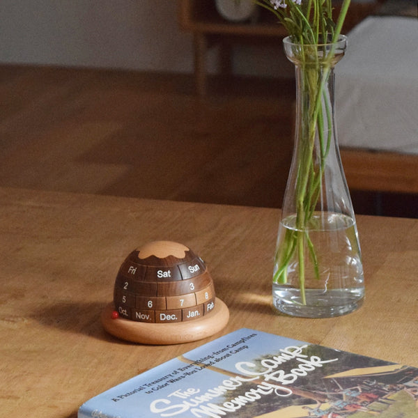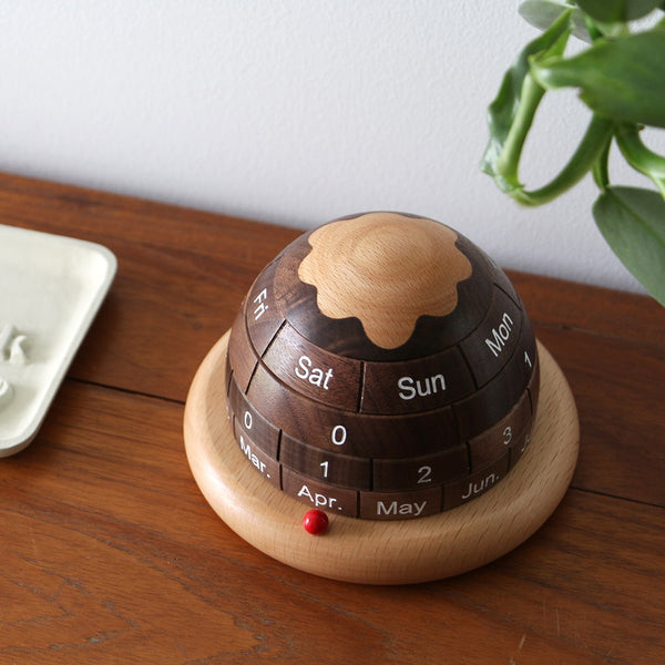 土台にある赤の目印部分を軸とし月、日、曜日をそれぞれ回して配置します。毎朝日付を合わせるその一手間が愛おしくなるようなデザイン。
