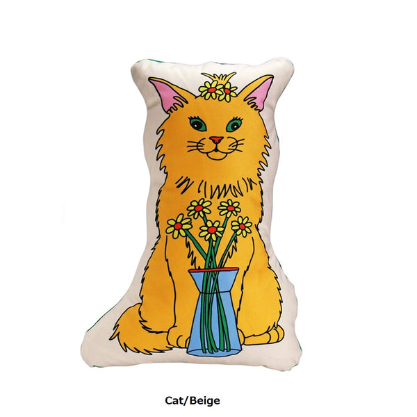 日々を楽しんでいるペット達をテーマにした、イラストレーターMIDORI KOMATSUデザインのクッション。