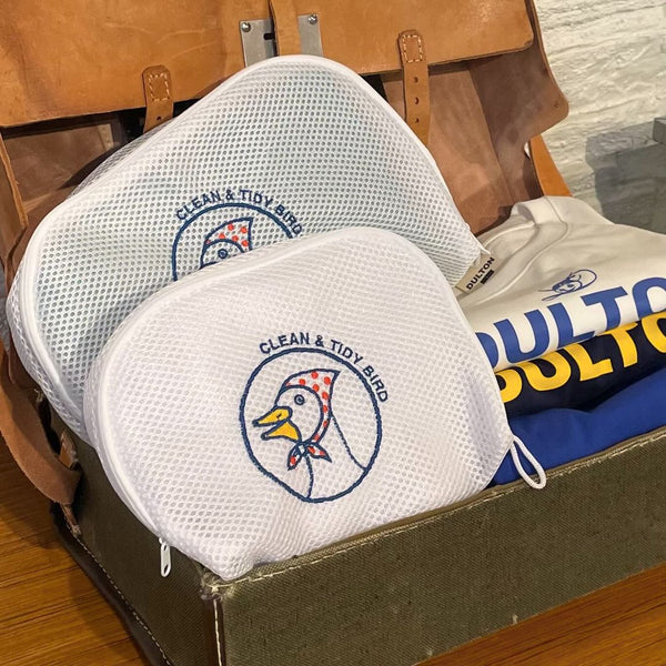 ご機嫌なアヒルを中央に構えたランドリーバッグ。 3層になったクッション性のある生地で、衣類の収納や日常の洗濯ネットとして最適です。 旅行時の収納ポーチとしては勿論、帰宅時には中身も一緒に洗濯機に。 サイドまでしっかり開閉ができるので、出し入れも容易に行えます。 アヒルが好きであろうがなかろうが、何故か惹かれてしまう。