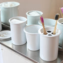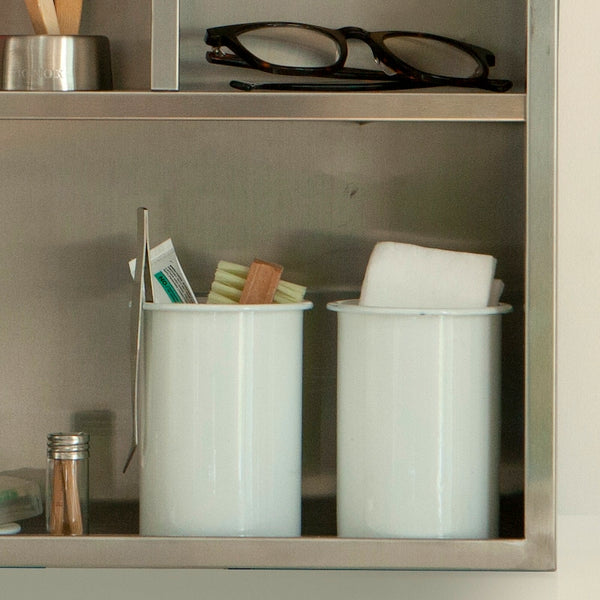 海外の蚤の市で見つけた時のあの憧れを思い出させてくれるような、どこか懐かしさを感じるホーロー(琺瑯)アイテム。 耐久性に優れ扱いやすく、清潔感のある滑らかな質感が特徴的です。 綿棒やコットンを入れたりなど、洗面周りで大活躍します。