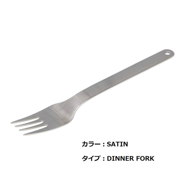 キャンプなどのアウトドアシーンにはもちろん、一般家庭やお店でも幅広く使えるステンレス製のカトラリー。軽量で小ぶりな作りなので、お子様用のキッズカトラリーとしても日常使いできそうです。 スプーン、フォークには耐食性・耐熱性に優れた18-8ステンレス、ナイフはより硬い18-0ステンレスを採用。先端に穴が空いているので、リングやカラビナ等でセットにしてアウトドア用として持ち運ぶのも◎。シンプルで使い易いシルバー、ブラックの2カラー展開。