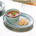 都会的な清々しさとクラッシックダイナーの温もりが調和したテーブルウェアU/Cシリーズ。 ストーンウェアの風合いと爽やかな配色が、オールシーズン、多ジャンルの料理を引き立てます。 ほんのりライトグレーの釉薬色にピーコックグリーンとグレーのカラーラインが爽やかな[BREEZE]と、 くすんだライトブルーの釉薬色に焦茶とネイビーのカラーラインで温かみのある[RIVER]の2色展開。
