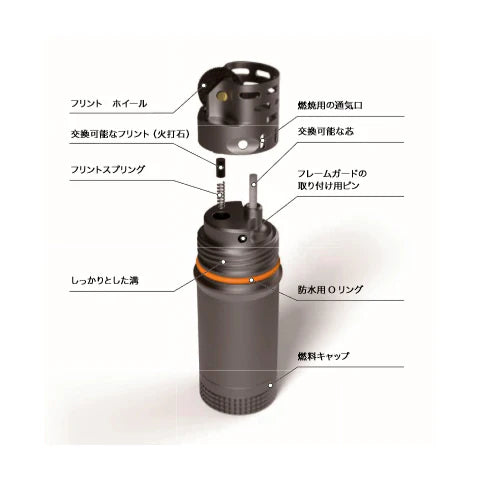 ■注意事項:長時間着火したままにすると芯の消耗が早まりますのでご注意ください。