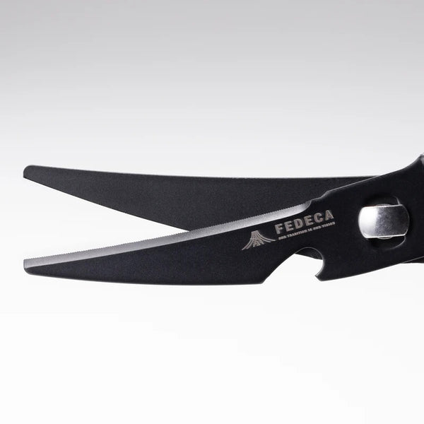 引き切りの効果を高めるべく受け刃には「セレーション加工(細かな凹凸形状)」を施しています。滑りにくい鶏肉もなんのその。ギザギザで内にカーブした「受け刃」で食材をしっかり捉え、「切り刃」がしっかりと食材を引き切ります。