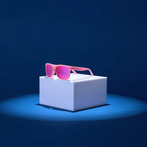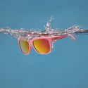 このピンクの「Tidal G」サングラスは、反射性の撥水レンズを備えた“沈まない”モデル。