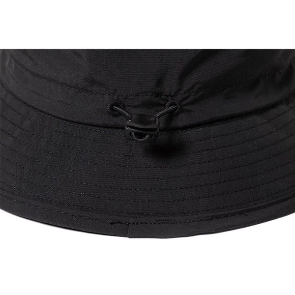 サプレックスナイロンを使用したサンシェードハット、ハットの裏側にサンシェードカーテンが隠れており必要に応じて出し使用できます。風が強い日はドローコードでキャップを固定出来、日差しが強い日やSUPなどでも重宝します。
