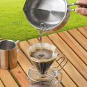 シェラカップに引っかけて使用。コーヒードリップポットがなくてもねらった所にゆっくりと注ぐことができます。