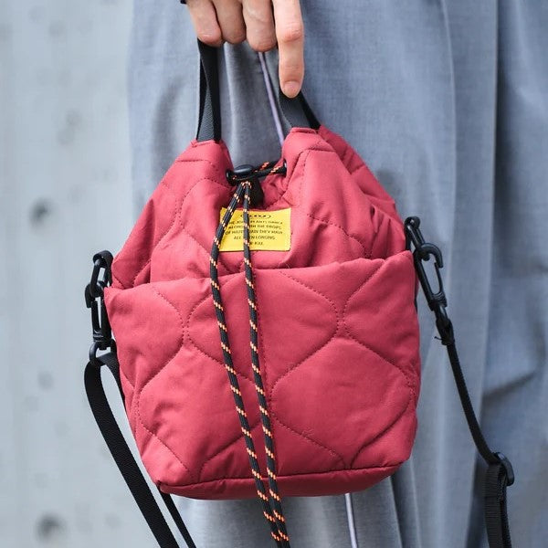 ふんわりとしたキルティング素材が秋冬スタイルにぴったり。 コンパクトな見た目ながら、内ポケットも充実していて収納力は抜群。 ストッパーを緩めるだけで大きく開く開口部は、荷物の出し入れがスムーズで実用性◎。