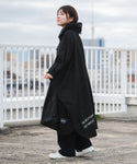 止水ファスナーで前からの雨の侵入を阻止、頭部はドローコードで調節できるため風の強い日でもフードが外れにくい仕様。