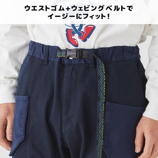 ウエストは付属のウェビングベルト+内蔵ゴムによりイージーな穿き心地に。