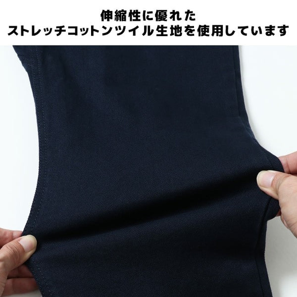 しっかりとした生地感のストレッチコットンツイル生地を使用。