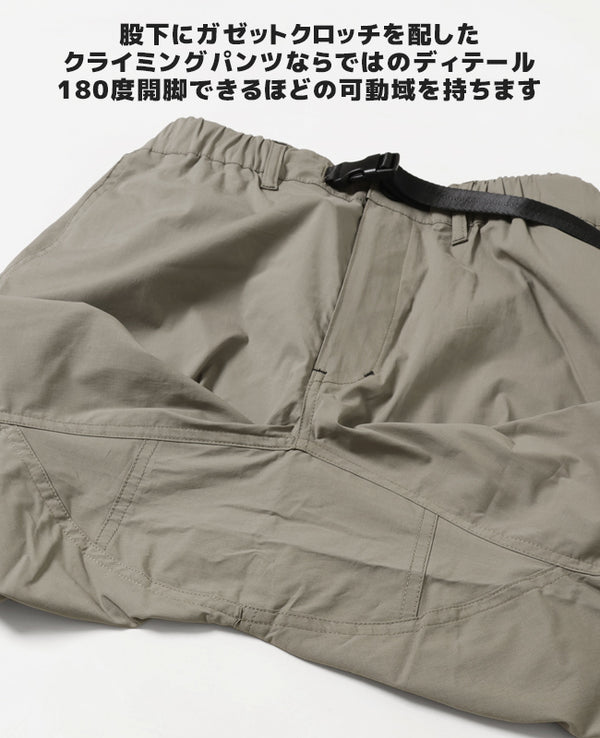 180度開脚できるほどの可動域を発揮する、股下に配したマチなど、クライミングパンツらしいディテールとなっています。