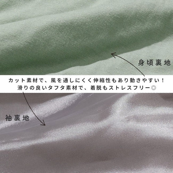 袖部分は滑りの良いタフタ素材の裏地なので、着脱もストレスフリー◎