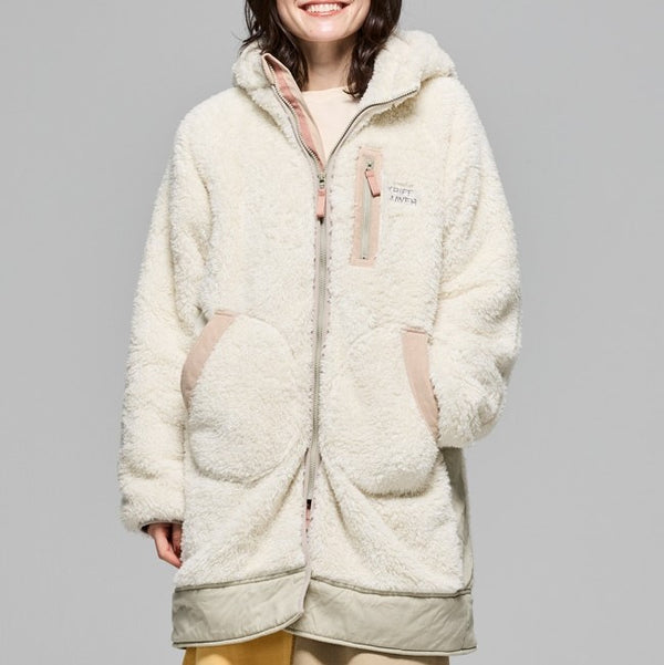 ふわふわの触り心地が気持ちのよい、ロング丈フリースジャケットです。