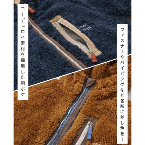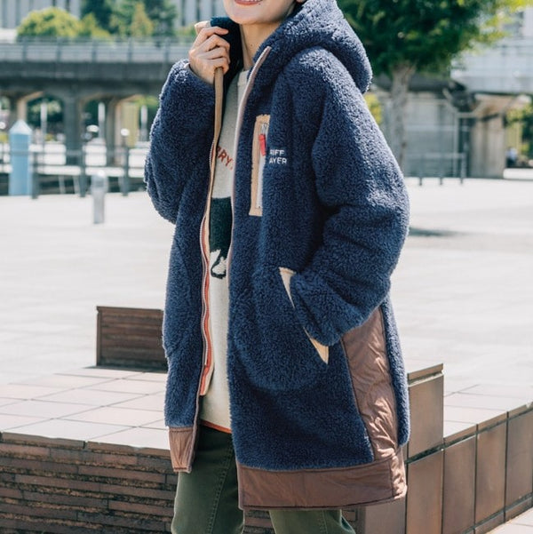 長いと派手に見えがちなボアですが、自然になじむ配色にファスナーやパイピングで絶妙な色合わせにしています!