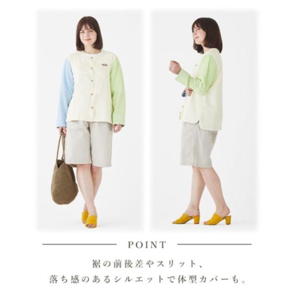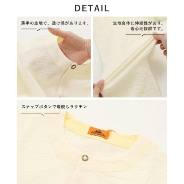 襟元、裾、袖口に配されたカット素材で肌触り◎