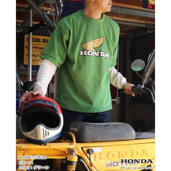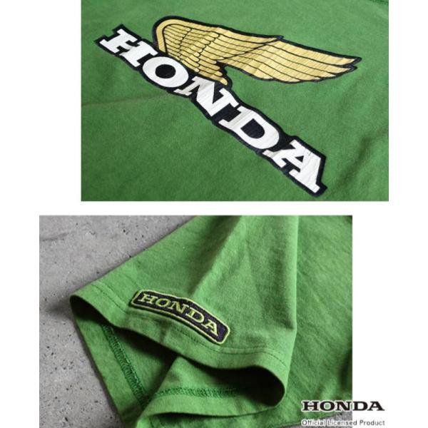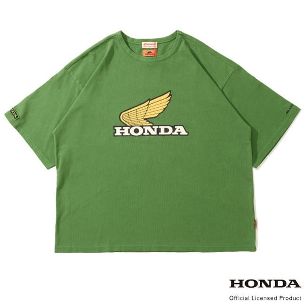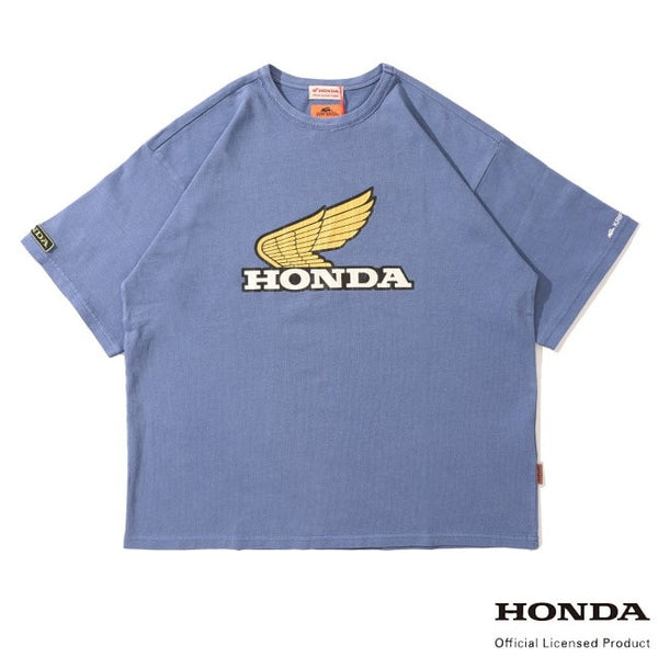 80年代のHONDAウィングマークをヴィンテージ感溢れるひび割れプリント(クラックプリント)で表現し、袖にはロゴワッペンが取り付けられたスペシャルな一枚!