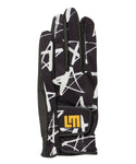やわらかなフェイクレザーに、ストレッチ性のあるカットソー素材を組み合わせた片手用グローブ。甲部分のマジックテープは、手首の返しもよく、フィット感の調節も可能。