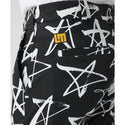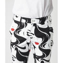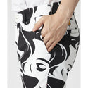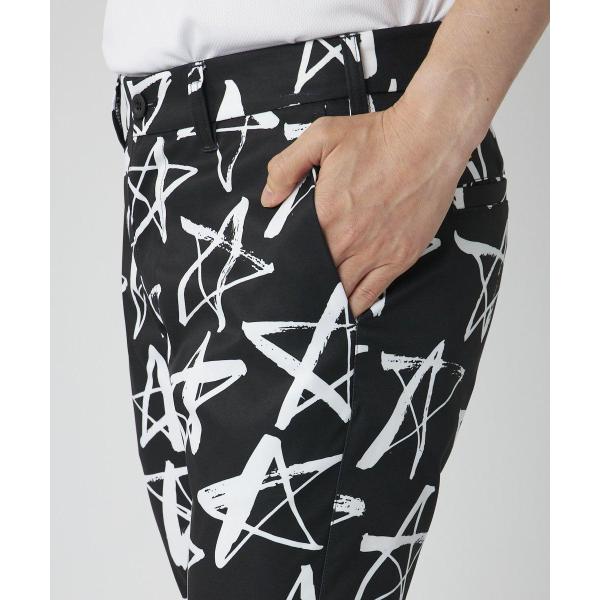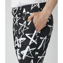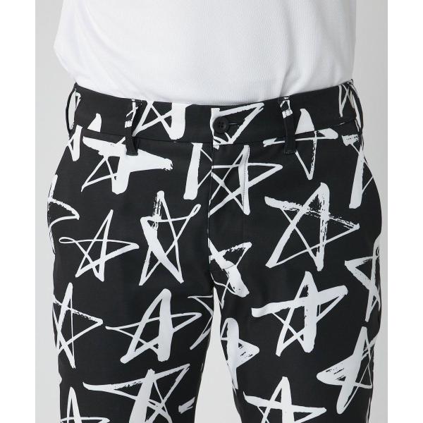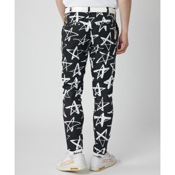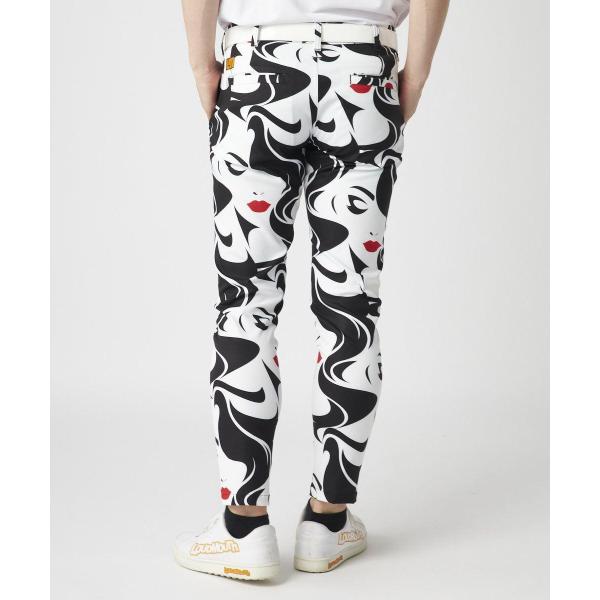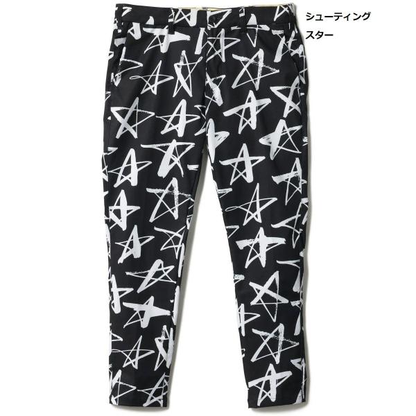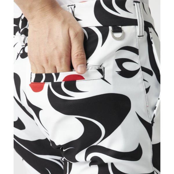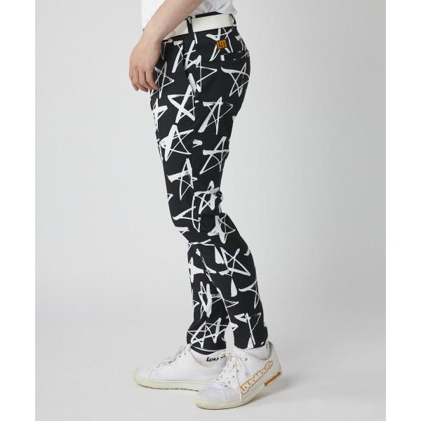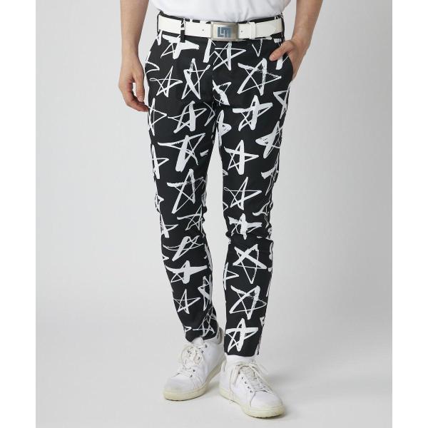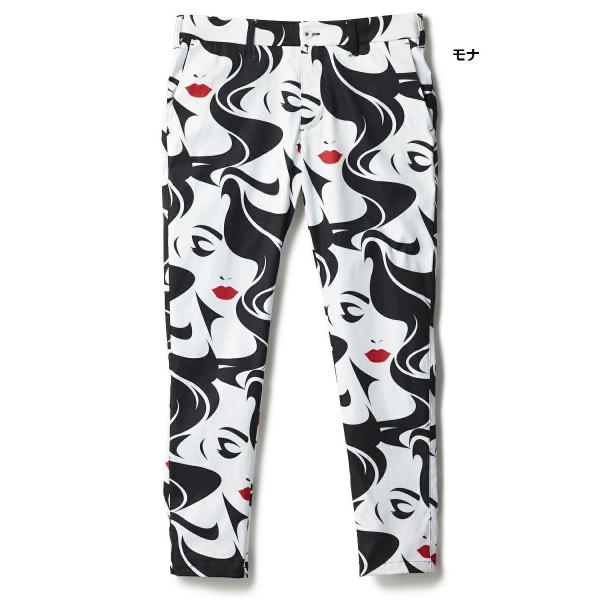 動きやすいポリエステルツイル素材を使用した柄ロングパンツ。