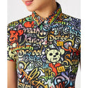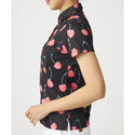 サラッとした肌触りのポリエステル素材を使用した柄半袖シャツ。
