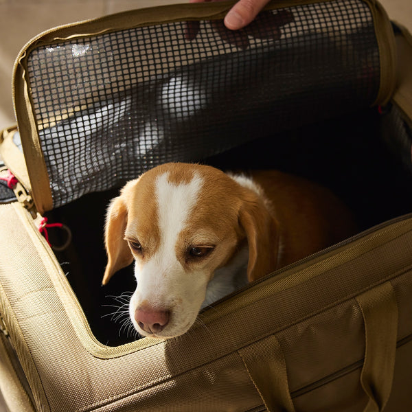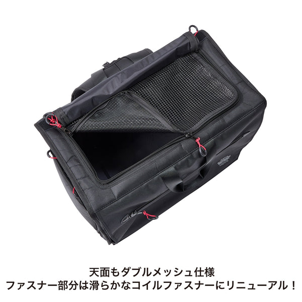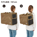 移動中もキャリーの中で伏せができる横型バックパック。