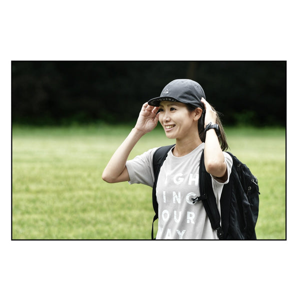 ヘッドランプ装着時でもツバを下に向ければ、ライトの灯りが遮られなく照射可能。