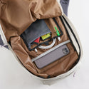 さらにフロントには小物が入るサイドジッパーポケット、トップにはスマートフォンやカード類を収納するジッパーポケット、背面には背負ったままアクセスできる位置に長めの財布やパスポートの入るポケットを配置するなど、クリーンな見た目からは想像できないほど多彩な収納を備えています。