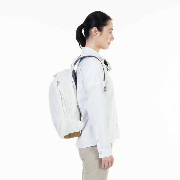 シンプルで洗練されたデザインながら、丈夫で使いやすい機能をしっかりと備えた、身軽で自由な旅を楽しむ女性のためのバックパック。 シリーズ名は草木の青葉に降る雨「翠雨」に由来し、薄手・軽量ながら高い耐久性を備えた210デニールのリップストップナイロンの素材は優れた耐水性能を備えており、レインカバー無しでもある程度の雨を防ぐことができます。 ちょっとしたお出かけから通勤、旅行や自然散策など幅広いシーンであなたに寄り添う相棒となってくれるでしょう。