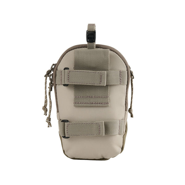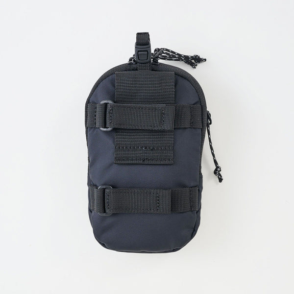 フルパッド仕様の外付け小型ポーチ。ジッパー式ポケットが2つで、モバイル端末やコンパクトデジタルカメラなどの収納に便利です。カラビナ不要でショルダーストラップに簡単装着できる独自設計のループ付き。素材は引裂きや摩擦に強いナイロン素材を使用しています。