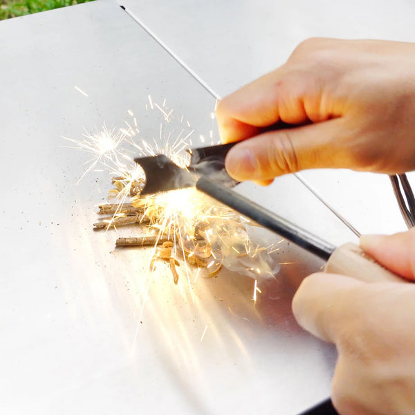 シュッと一瞬で火花を起こす、『火打石』のようなファイヤースターター。程よい長さで、初心者の方やお子様でも火をおこすことが可能です。