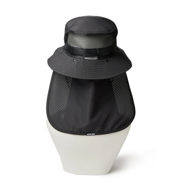 シルエットはライニングを取り除くことで、軽量かつ着用時の蒸れが軽減されたアドベンチャーハット。 アイレットは刺繍仕様。あご紐とサンシェードは着脱可能。