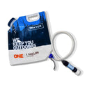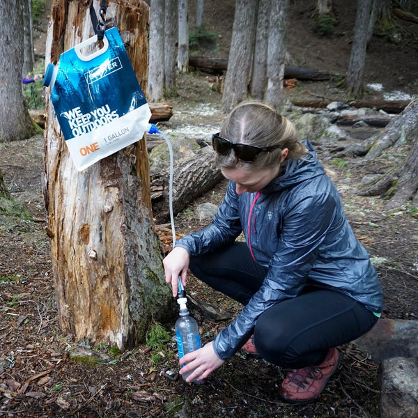 重力で自動に浄水ができるグラビティシステムを採用。水の重みが加わり細いチューブを通ることで勢いがつき、無理なくスピーディーに浄水を得られます。付属の1ガロンパウチを使用し、吊るして一度に大量の浄水がで可能。手元を塞ぐことがないのも魅力です。キャンプの時などに夜セットしておけば、朝浄水が使えてとても便利です。