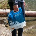 ※パウチの外側についた水をそのままにして上から下に下げると、浄化されていない水がフィルター内部を通らずにそのまま水筒などに落ちてしまう可能性があるので、吊るす前に水分を拭き取ってください。
